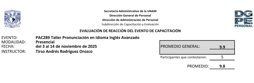 NOVIEMBRE 2025 PAC289 Taller Pronunciación en Idioma Inglés Avanzado